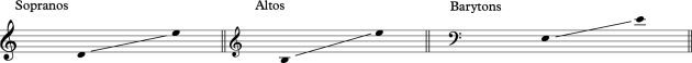 Nomenclature vocale : Soprano, Alto, Baryton - Accompagnement : Piano ou Orchestre (accordéon ad.lib)